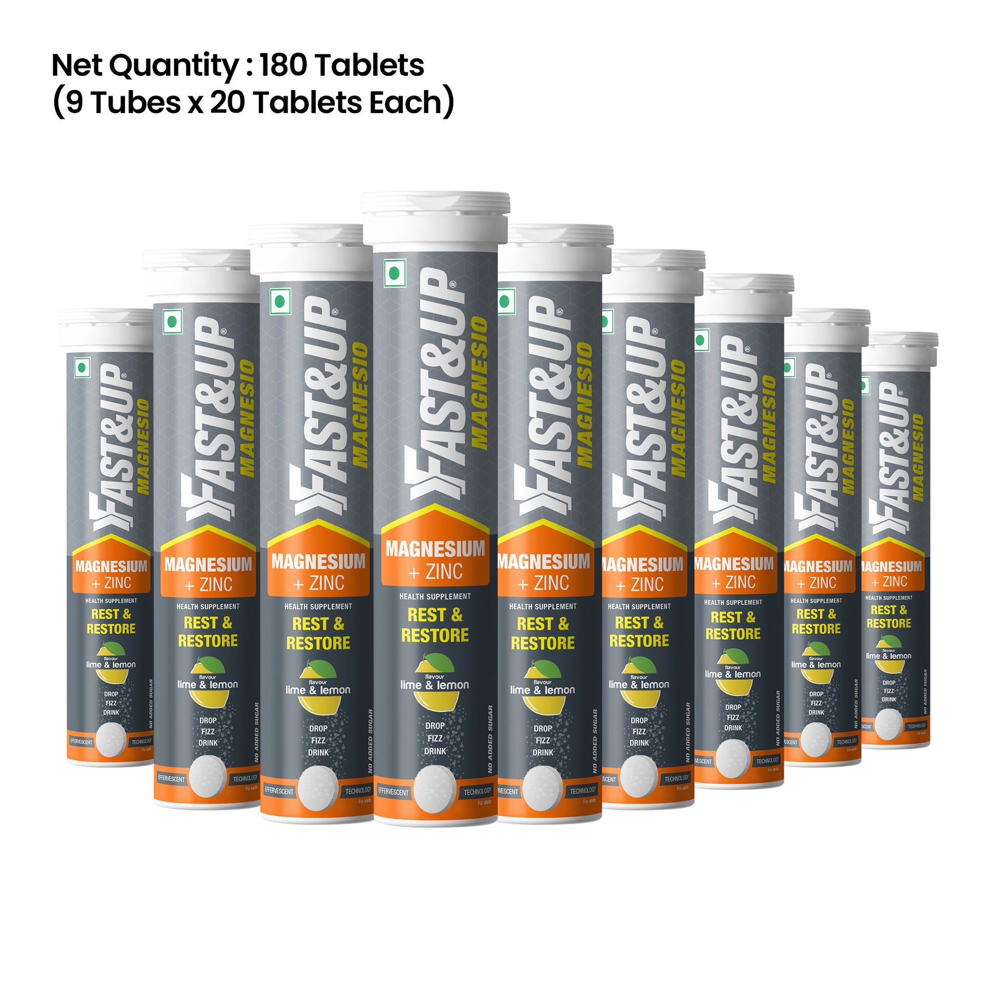 Fast&Up Magnesio supplement is specially formulated Swiss effervescent technology with a combination of Elemental Magnesium & Elemental Zinc to help with good quality sleep and overnight muscle recovery. It also helps contribute to daily requirement of Magnesium, it offers faster and maximum absorption, has no known side-effects and no added sugar.