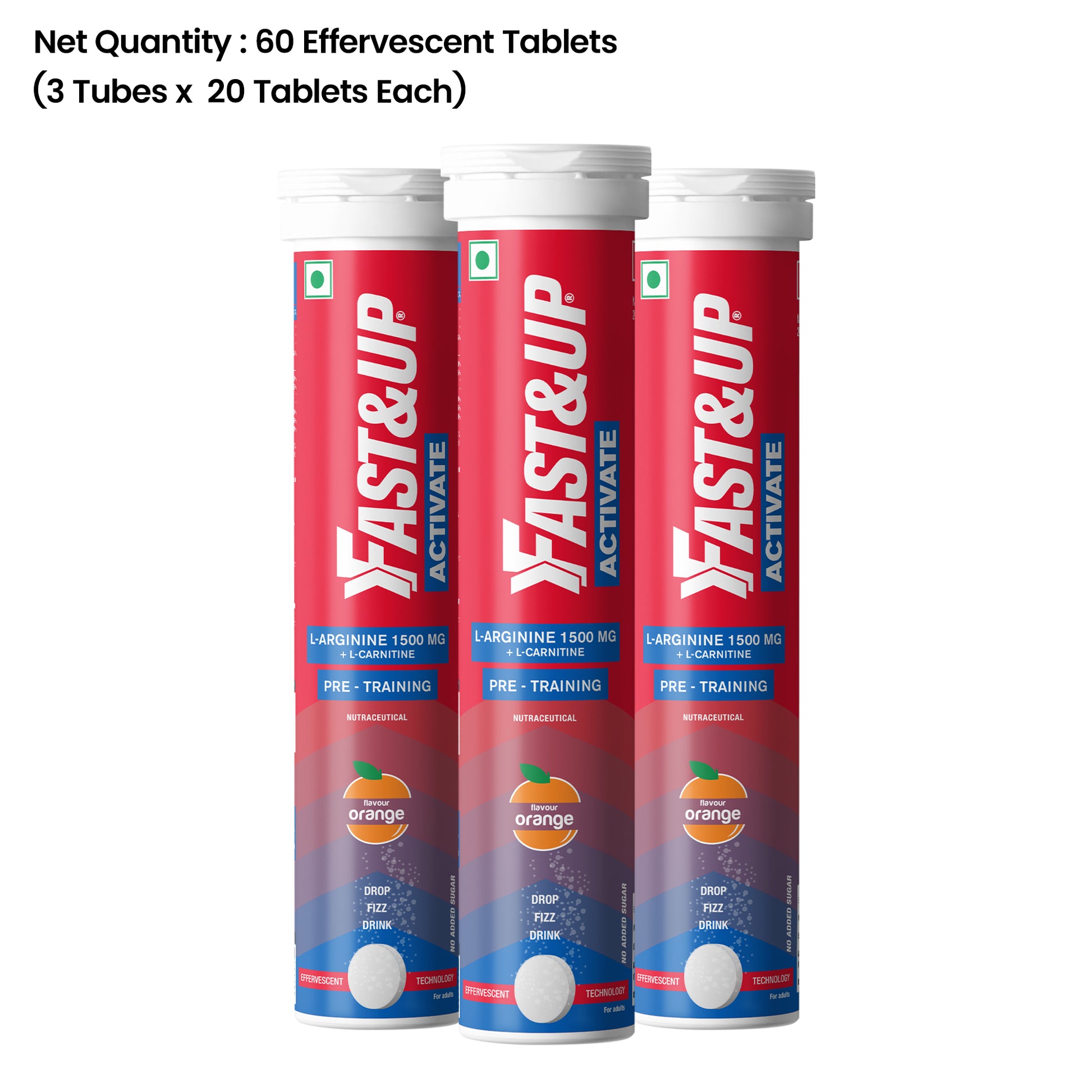 Fast&Up Activate is an effervescent pre-training/pre-workout drink with an optimal combination of performance boosters such as 1500 mg L-Arginine + 250mg L-Carnitine and Essential Active Nutrients to ensure you never waste a workout. Fast&Up Activate is a drink that helps you get the most out of your performance and fuels your workout.
