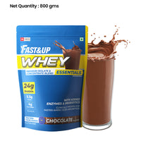 Fast&Up Whey Essentials is formulated with Ultra - Filtration technology and is 100% premium quality whey protein blend of isolate and concentrate grass fed whey sourced from Europe. It provides 24g protein, 5.5g BCAA and 4g Glutamine for better muscle strength, endurance and recovery. In addition, the added digestive enzyme helps to improve digestion by limiting irritability resulting from protein indigestion or stomach upset commonly observed with protein powders available in the market.