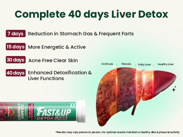 Alcohol consumption, local quality supplements, excessive protein intake and medications can cause accumulation of harmful toxins in the liver. Fast&Up Liver Detox helps flush out these toxins and maintains liver health -