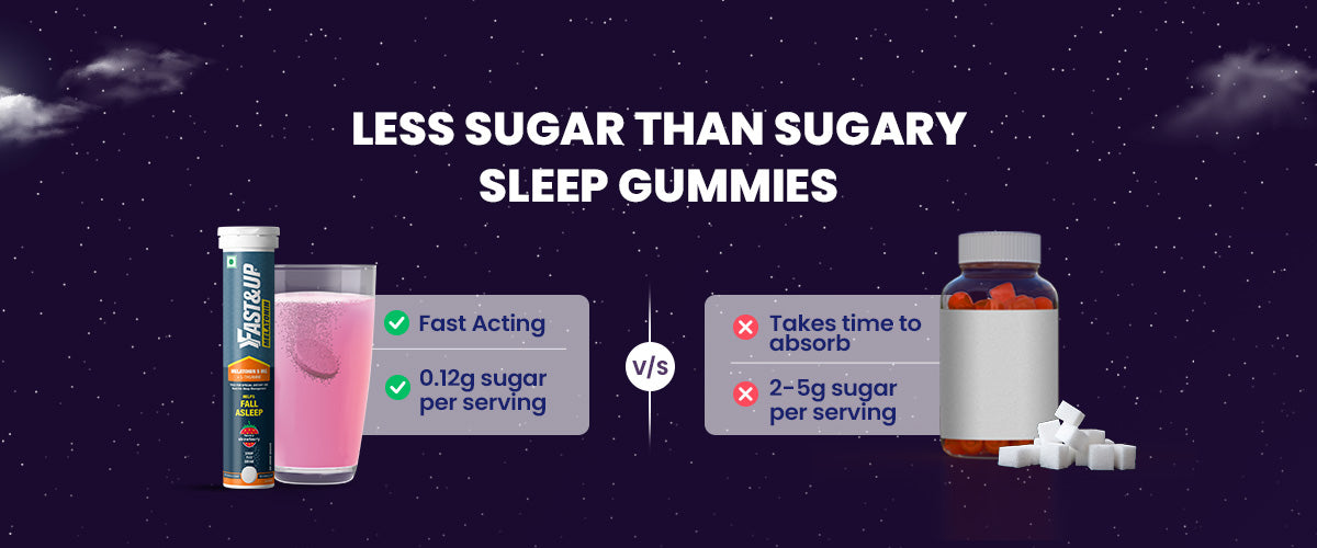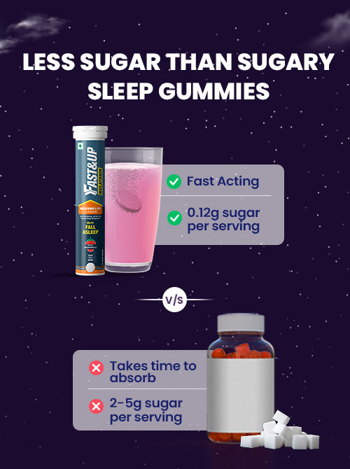 Struggling to sleep? Fall asleep faster with the fastest acting Melatonin, made with 5 mg Melatonin to get faster sleep & 100 mg of L-Theanine to help relax nerves. With just 0.12 g of sugar and no added sugar, it’s a healthier choice than other sleep gummies with upto 5g sugar. It is non-habit forming, has no next day drowsiness & safe for daily use.