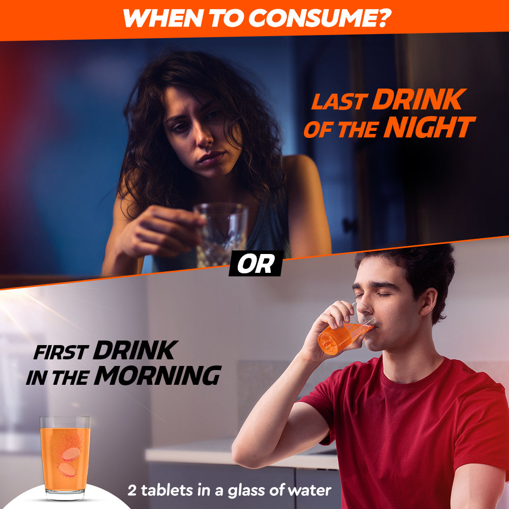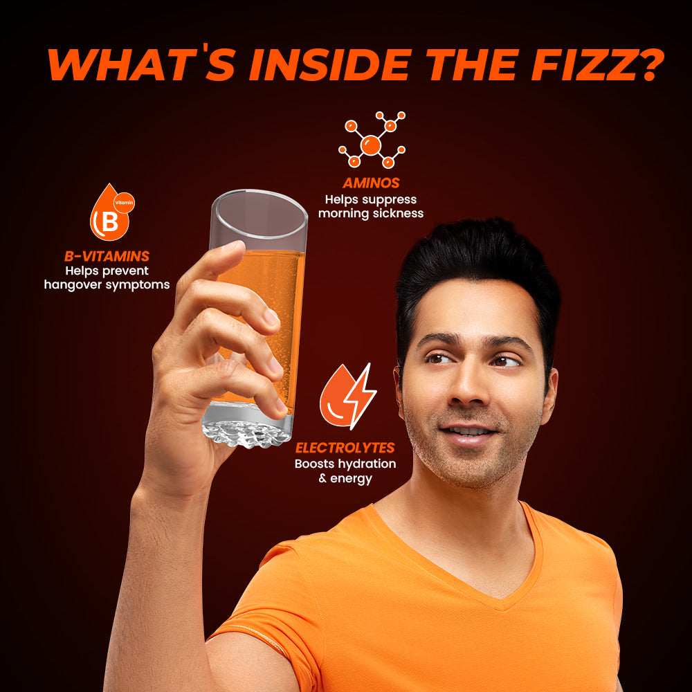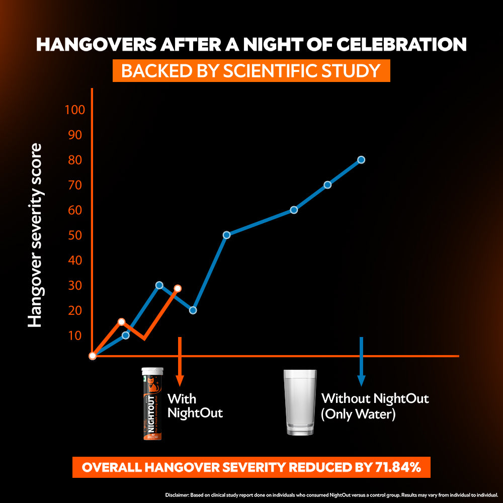 NightOut contains added Instant Electrolytes such as Sodium, Potassium, Magnesium and Calcium along with a blend of Amino Acids & B-Vitamins which helps you wake up fresh & energetic after a night of celebration. It is available in two refreshing flavours: Fizzy Lemon and Orange Spritz. The formulation is non-habit forming, offers high bioavailability, and is fast-absorbing for quicker action. Gentle on the stomach and with no known side effects, it’s a safe and effective choice.