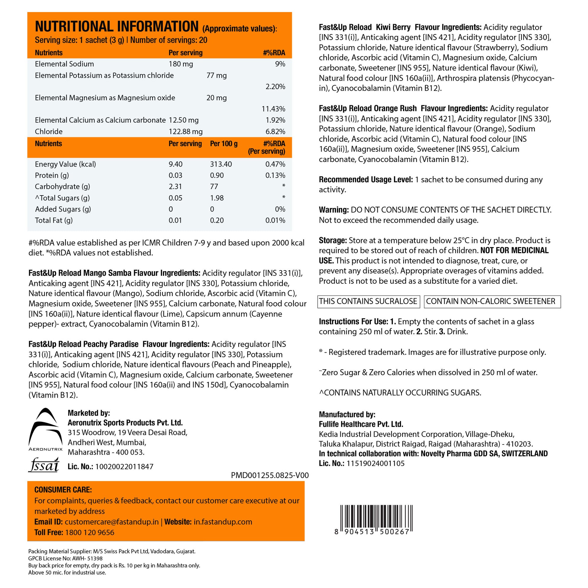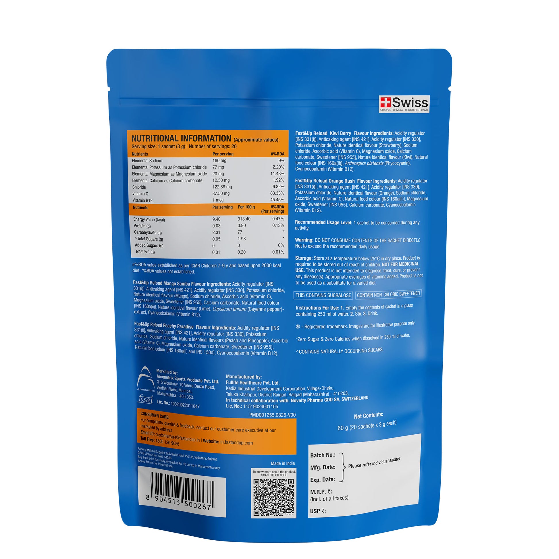 Fast&Up Reload is a Hypotonic Drink with an Intelligent Combination Of 5 Electrolytes including Sodium, Potassium, Magnesium, Calcium & Chloride and Vitamin B12 & C, making it an ideal hydration drink for Instant hydration and energy.